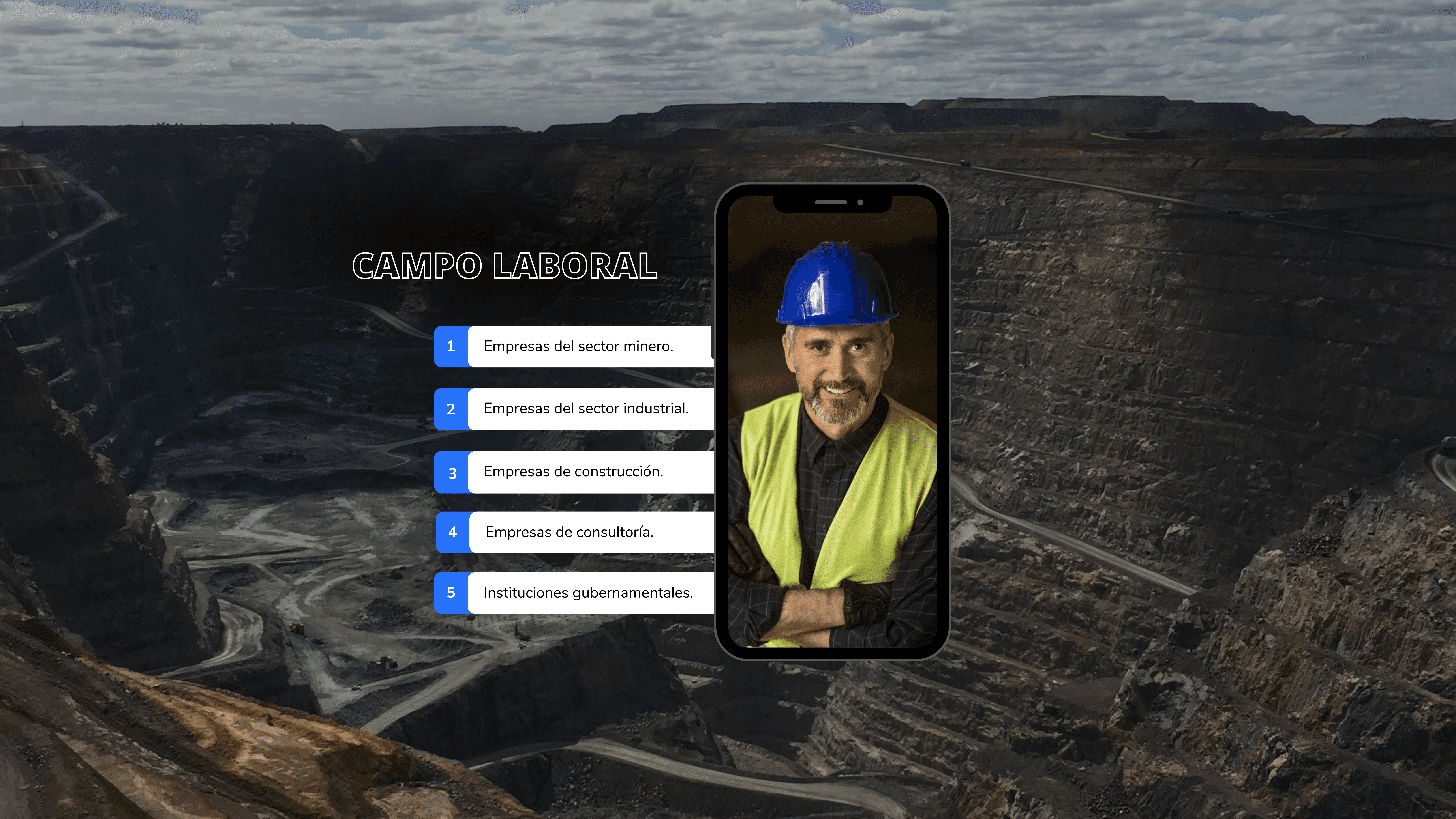 Industrial y mineraIngeniero de Seguridad Industrial y Minera, especialista en emergencias y desastres, especialista en supervisión de trabajos de alto riesgo. Experiencia en los rubros de salud, minería, industrial y construcción civil.