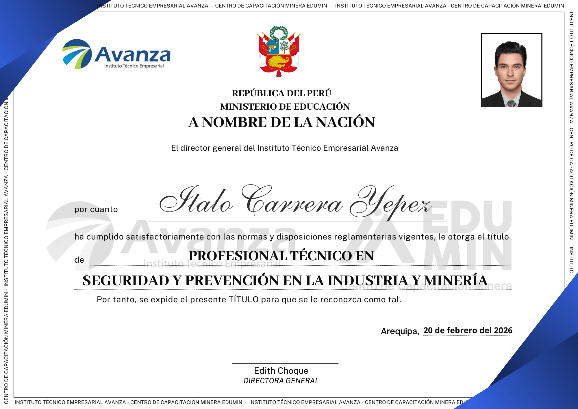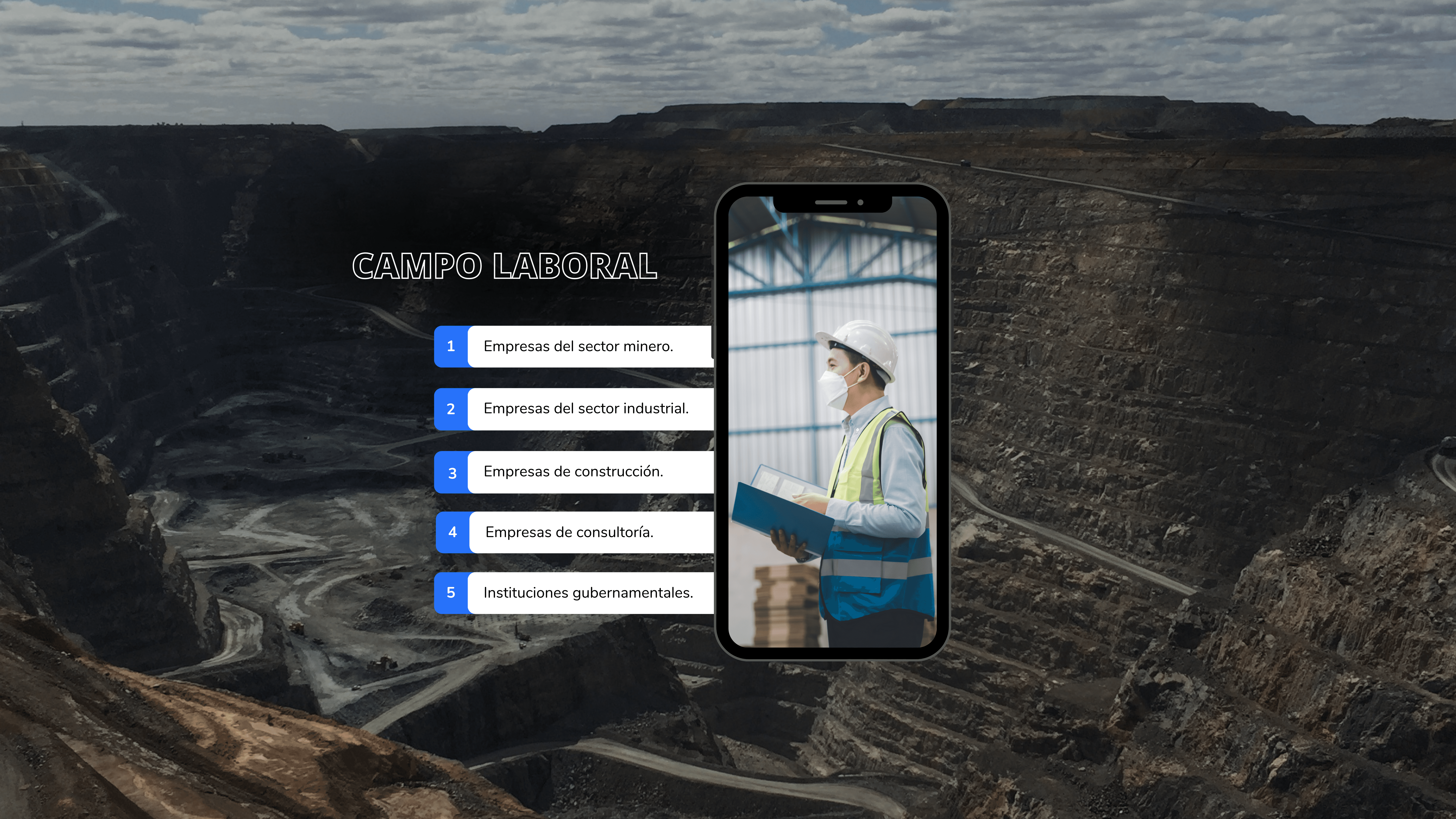 Industrial y mineraIngeniero de Seguridad Industrial y Minera, especialista en emergencias y desastres, especialista en supervisión de trabajos de alto riesgo. Experiencia en los rubros de salud, minería, industrial y construcción civil.